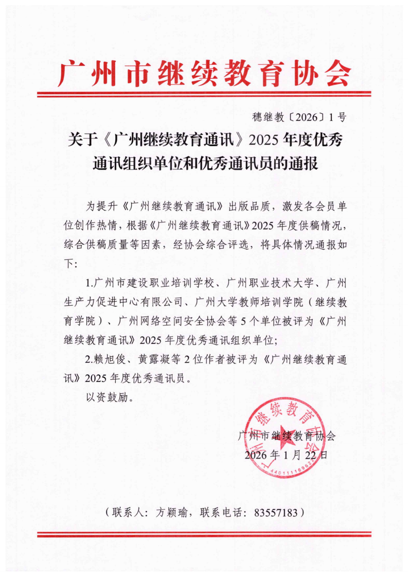 关于《广州继续教育通讯》2025年度优秀通讯组织单位和优秀通讯员的通报